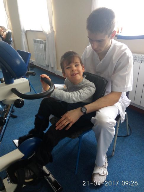 Здравствуйте, друзья. Первый день отстояли. Сегодня был массаж и коррекция. Димка подрос, рост 112 см и весит 15 кг, он очень обрадовался докторам. Наш лечащий врач тоже обратил внимание на то, что Дима лучше становится на правую ножку, все-таки костюм ’спираль’ ему помогает. Дорогие наши волшебники, чтобы закрыть им сбор на лечение, осталось собрать 3901 грн. Не проходите мимо, нам очень нужна ваша помощь!
