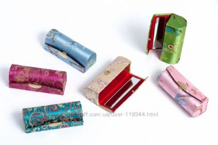 Помадница обтянута шелковой тканью с цветочным орнаментом, и имеет внутри небольшое зеркальце. Это очень удобно, если Вы захотите воспользоваться содержимым помадницы, и рядом не будет зеркальца.