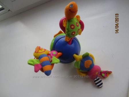 2). Для деток постарше будет интересна вторая сторона, с которой свисают небольшие мягкие цветные зверюшки - черепашка, пчелка и зайка.