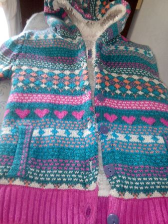 Тёплая кофта на зиму,на осень-весну можно носить как курточку. В хорошем состоянии,без пятен и дырок. В комплекте идёт шапочка. На 1-2 года,надо смотреть по замерам. Длина рукава от шеи -36 см. Длина рукава под мышкой - 24 см. Длина изделия - 35 см. Объём под мышками - 70 см. Объём шапки - 50 см. Цена 55 грн.( 20 грн. ребёнку!)