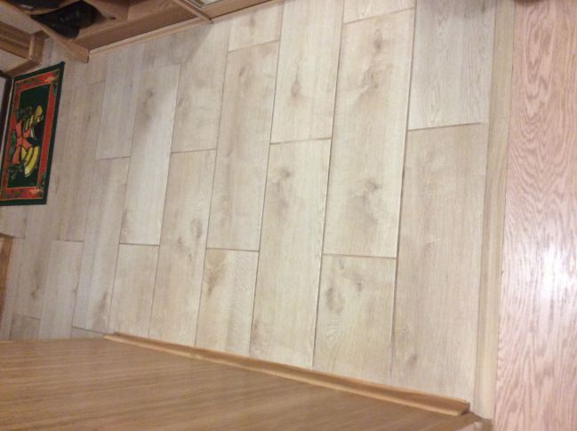 ясно. судя по фото цвет плитки и ламината идентичный и переход визуально не очень контрастный?