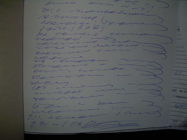 У меня за плечами мединститут и несколько лет работы. Я понять что написано не смогла. Мое мнение если врач так пишет, он делает это умышленно чтоб в случае чего трактовать свою запись как ему удобно. Да у врачей плохой почерк из-за большого объема писанины, но это уж слишком. Кстати всегда если врач заинтересован в пациенте, если не сомневается в своем диагноза он пишет более разборчивость или спрашивает: Вам понятно? Расшифровать? Мой совет ищите другого врача.