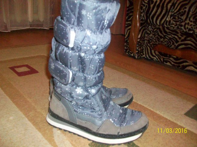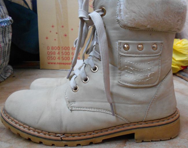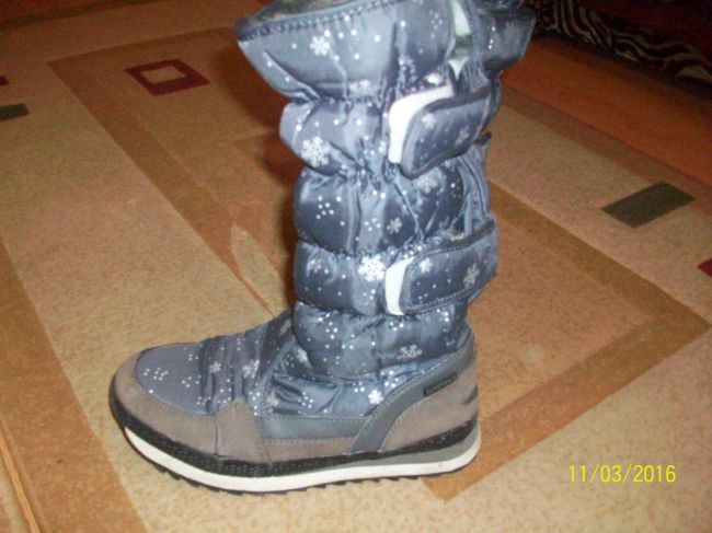 Сапожки дутіки дуже теплі, на ліпучках з-заду,(трішки тріснув верхній матеріал), можливо комусь на подвір ї знадобиться 38р.