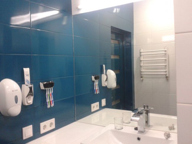 У нас плитка обычная, дешевая, а углы из белой плитки, классно расширяет ванную!
