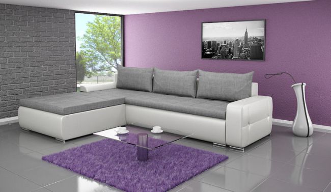 заказывали такой в серую комнату. Сидушки с серого антикоготь, остальное- белая кожа с перламутром. Хоть и угловой, но места не много занимает и сидеть удобно. Довольны