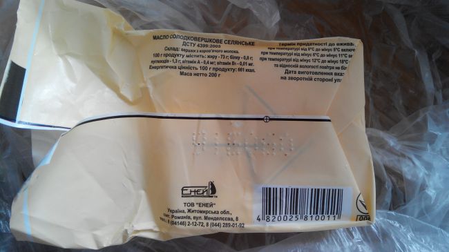 купила на базаре масло солодковершкове ТОВ "Еней", Житомирская обл., смт Романів,состав: вершки з коровьего молока, ДСТУ как в нормальном масле, а оказалось, как попробовали СПРЕД. Саможе жуткое, покупала чтобы испечь печенько ребенку, вот с одной пачки спекла, а вторую распаковала, намазала бутерброды, попробовала - УЖАССС!!! Куда можно обратиться чтобы наказать производителя такого г**на?