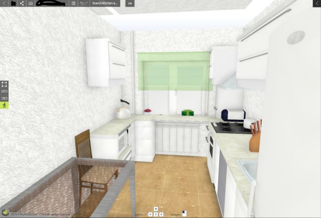 Что меня больше всего смущает в первом дизайне, так это то, что холодильник стоит у окна, а значит газовую плиту нужно подвинуть на полметра, а то и чуть больше, еще и шланг будет идти за холодильником. Я так понимаю, что газовщиков будет очень сложно на это уговорить. Ну и мойку нужно будет двигать вправо, сейчас она по центру стены