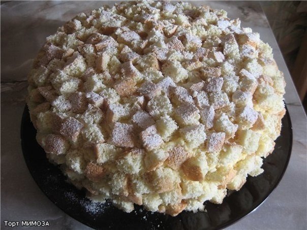 Торт подкупает своей абсолютной простотой и очень эффектным внешним видом. Вот уж поистине - мимоза!