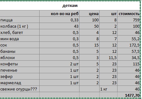 яблока 0,5????? банан 0,5?????? лучше бы детям нормальное дали, чем себе бутрики и шампанское.