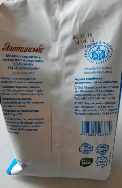 я написала не о том что на фото молоке яготинское литровый тетропак