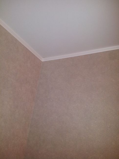 а потом багеты, одна сторона приклеена к стене вторая просто плотно к потолку прилягает