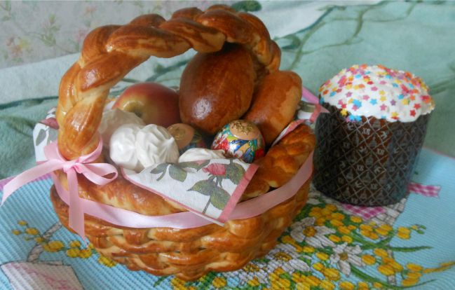 обычная плетенная корзинка. Накрываю полотенечком, маме связала пасхальное полотенечко ))