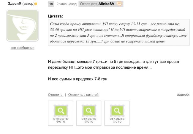 Странно, что вас не удивляет, когда автор пишет, что ей чтобы в своём городе покупателю товар передать, ещё нужно за дорогу заплатить и из своих она проезд оплачивать не будет, поэтому отправит по городу укрпочтой за счёт покупателя.