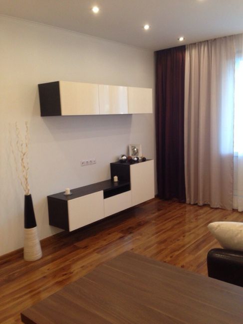 Хочу в зал такую тумбу под ТВ (фото с инета), подскажите знающие , какую нужно заказывать глубину шкафчика, высоту от пола и расстояние от верхних шкафчиков до нижних... и какой мдф лучше глянцевый или матовый.