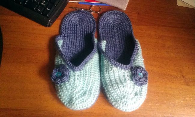 Я из войлочной подошвы вот такие тапки себе связала, очень довольна. Но подошва нужна плотная, войлок ооочень быстро протрется.