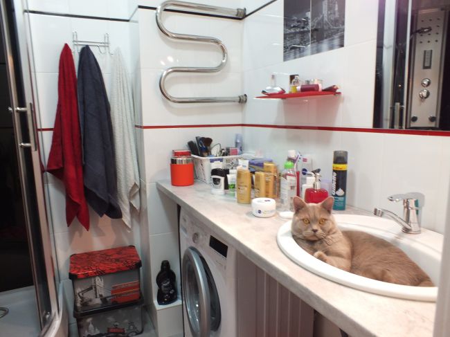 Столешница итальянская Arpa влагостойкая, покупали и кромковали в Эпицентре - там можно купить половину плиты. Там же вырезали отверстие под умывальник. Затем уже сами обрабатывали этот срез акриловой краской в 3 слоя - один высох, наносим другой и т.д. Это нужно для того, чтобы заполнить поры и предотвратить попадание воды. А потом перед самой установкой еще прошлись по срезу силиконом.