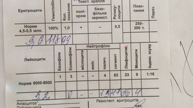 Ладно, по теме, у вас палочек - 13, сдвиг влево, похоже на бак инфекцию.