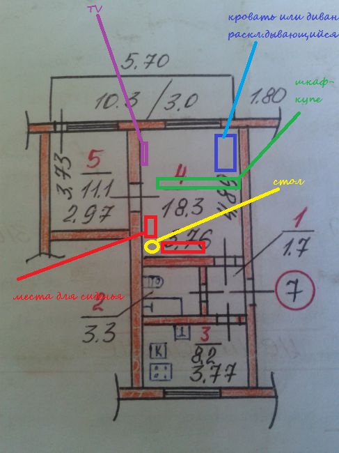 Совсем неудачная планировка, у нас тоже двух комнатная хрущевка , но трамвай чиком. В коридоре за счёт комнаты сделали гардиробную и поставили двери в детской. Получилось очень хорошо.хоть квартира и маленькая , зато своя.