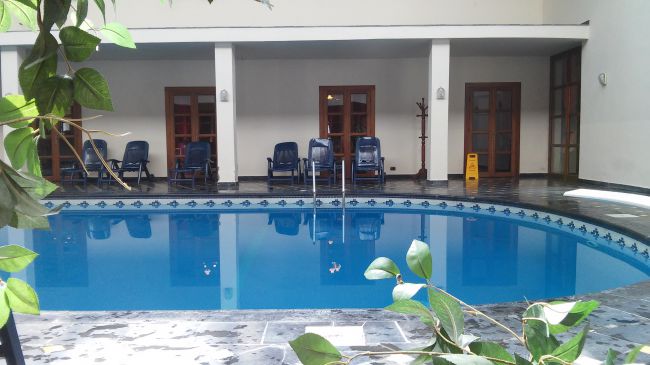 Забуканий готель на дві ночі зі сніданками і відкритим басейном (60Є за ніч) - це, в принципі, дорого, але Дхермі популярна і не дешева місцина, залишався малий вибір вільних готелів на той період. Можна було б і по місцю шукати (здавалися апартаменти *наживо*), але я хотіла 100% мати *базу*