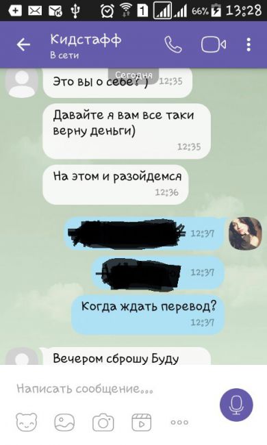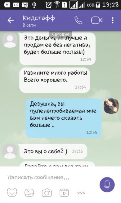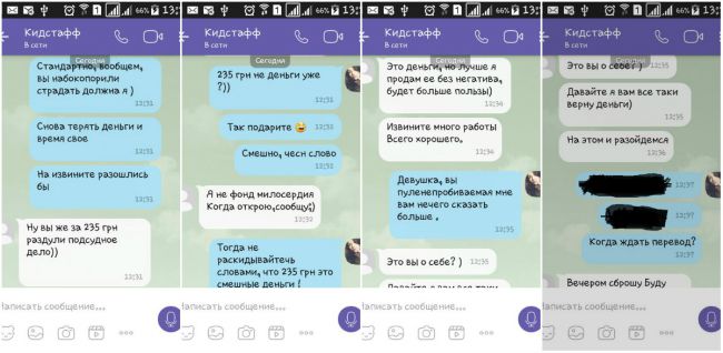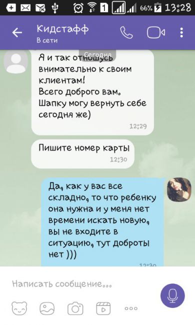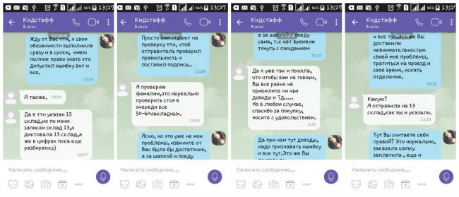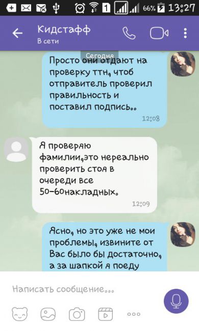 я купила в среду шапку сыну. правда, на олх. номер ттн мне дали (типа чек забыли в машине). в понедельник смс от новой почты нет. пишу продавцу, она скидывает фото ттн. там неверно указан мой телефон и моя фамилия. пошла я на почту, а ее муж застраховал шапку на 4000 грн. при этом шапка стоила 200 грн. я была ’мягко’ удивлена... оплатила доставку, написала прродавцу, что зачем это было делать? на что получила смс на мобильный: ты че, с**ка, из-за 20 грн гасишься?