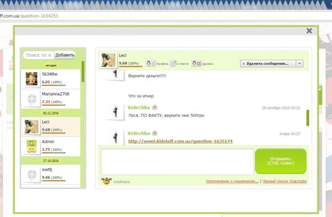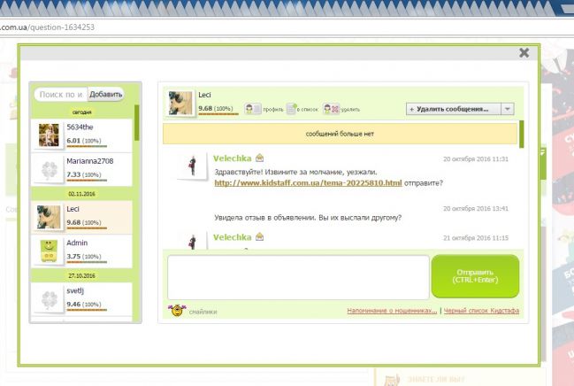- Леся, добрый вечер, зайдите на Кидстафф в личку