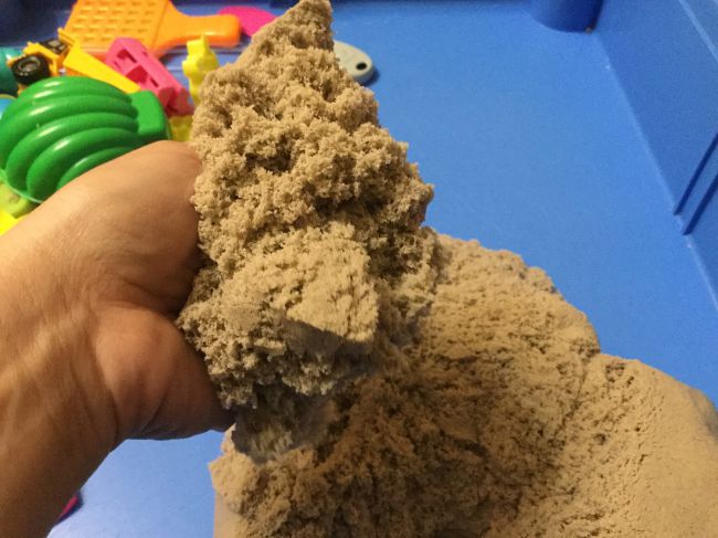 В интернете полно видео, где демонстрируются свойства этого песка, тем более, со слов автора, ребенок знал об этом песке и хотел его.