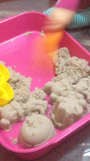 Ребёнок плакал из за песка? А ребёнок уже знает, как должен выглядеть нормальный кинетический песок, тут же подметил разницу и заплакал?)))