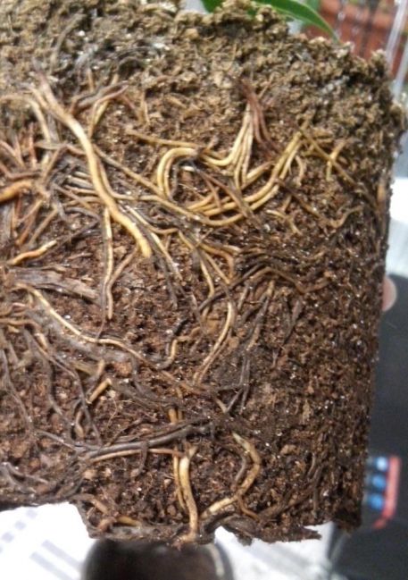 Корневая система не пахнет ни плесенью ни подобным. Может ему тесно и нужно пересадить? (см. фото)