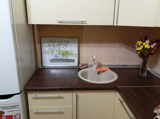 моя (еще вытяжку и электрочайник купим).Крашенный МДФ.