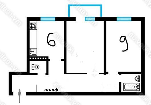 Девочки, есть вариант купить хрущевочку на Дарнице за 30 тысяч. От метро 10 минут пешком. Квартира - старая панель (не кирпич), двушка, крошечная, но тем не менее в ней 2 комнаты, и раздельный санузел в разных частях квартиры (что в хрущевках редкость). Деток двое - 13 лет сыну и 6 дочери. Поскольку там всё равно нужно будет делать полный ремонт, рассматриваем вариант перепланировки вот таким образом: совместить кухню с залом, увеличить ванную за счет коридорчика и мини-кладовки. Маленькую комнату полностью отдать детям. Пока не знаем, можно ли сносить межкомнатные стены - не понимаем, где там несущие. В гугле вариантов перепланировок не нашла...