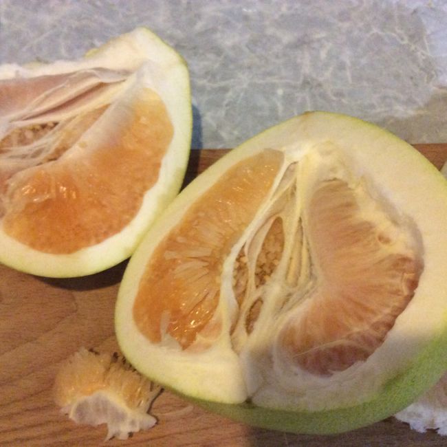 Разрезали помело, я, конечно, видела, что корка зеленовата, но такой гадости не ожидала. Оно абсолютно зеленое и очень сухая мякоть. Цвет мякоти еще какой-то оранжев-розовый вместо желтого. Кажется, даже если б дозрело, хорошим бы не было. Есть нельзя, очень сухое. 40 грн/кг, в нем как раз килограмм. Как думаете, если приехать показать им, вернут деньги?