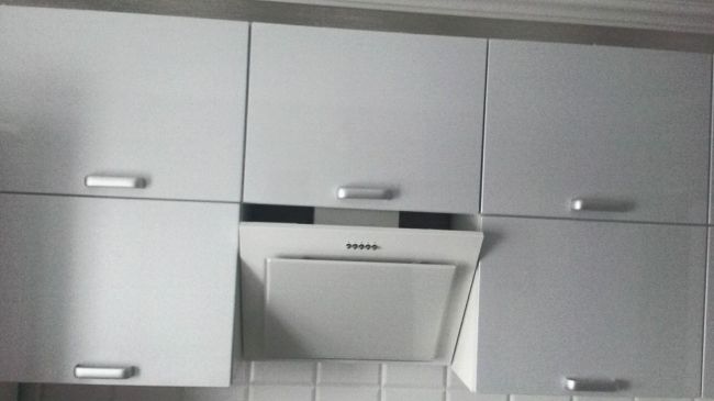 да, 90 см. Два шкафа по 45 см открываются вверх. Только мы сразу протупили, и не сделали, чтобы не было зазора между шкафами и потолком. Короб от вытяжки будет просто лежать на верхних шкафах. (Пока еще не подключили)Его не видно, но пыль и жир оседать будут. Поэтому советую, чтобы все наглухо)))