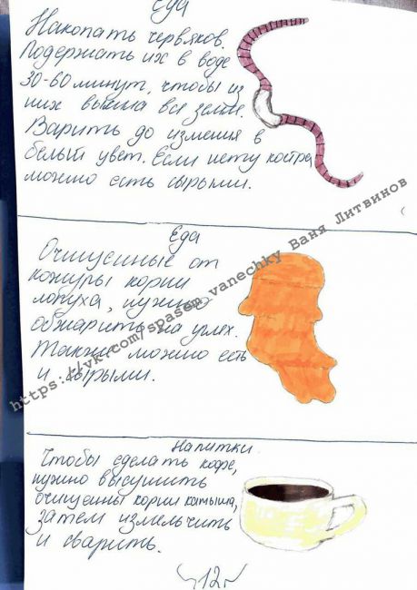 А Маша Ремизова продолжает снабжать Ванюшу книгами. На этот раз это лучшая книга по выживанию и три книги самого Беара Гриллса!!! НЕсмотря на боль, Ванечка сидел до 5 часов утра , пока не прочитал... А сейчас пишет свой рассказ, с путешествиями и кораблекрушением, точными топографическими картами, которые он невероятно талантливо рисует, таинственным островом и желанием выжить