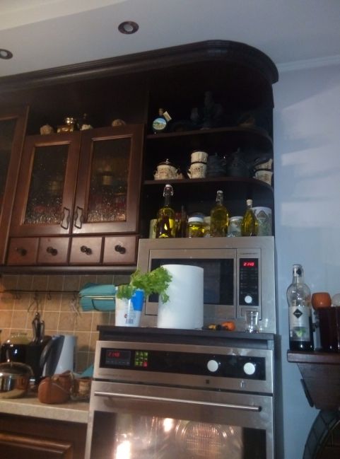 а зачем на микру ставить, если там сверху шкафчик закругленный можно повесить?