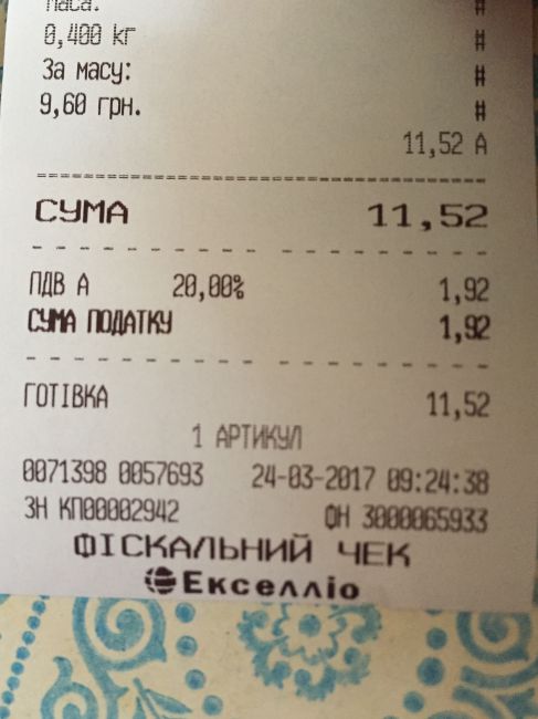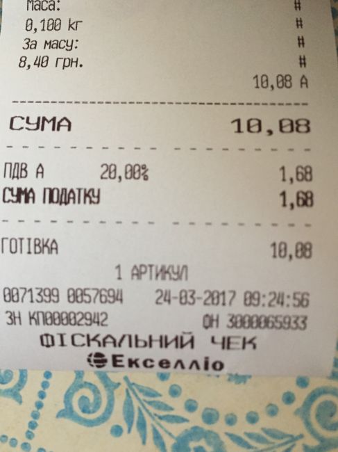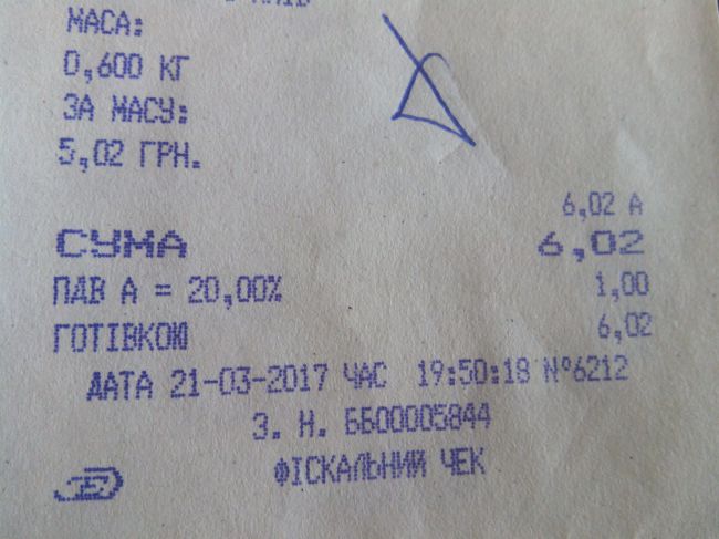 А от для 100 г та 10 кг - аж ніяк не відповідає документові. Зате сходиться 100 г з чеком автора - 10.08 грн.