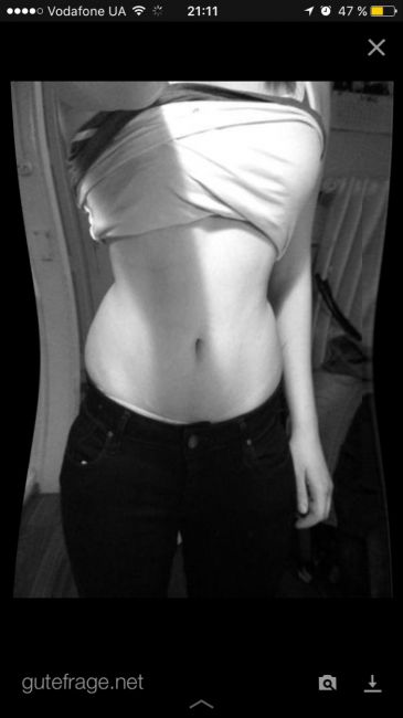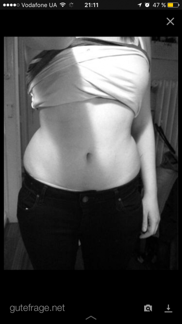 Пупок странный, так как протянула видимо вертикально по самой талии, но при этом ребра и грудь поднялись в верх.