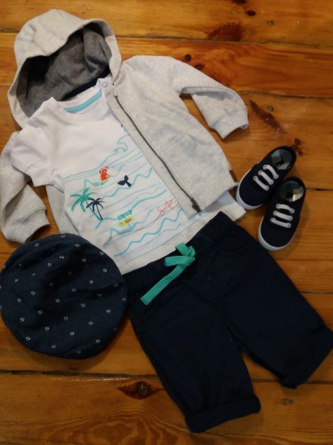 И во всем этом благолепии ребенок будет спать, максимум, сидеть в коляске. Гардероб красивый, но бестолковый. На жару практически нет ’луков’. Все на теплую весну - прохладное лето почти. Еще может быть довольно холодно, а у вас из курточек только ветровки. Жилетку я вообще не рассматриваю как вариант для таких малышей. Если малыш начнет топать, то пинетками не обойтись. Как ни крути, ’луки’ неполные.