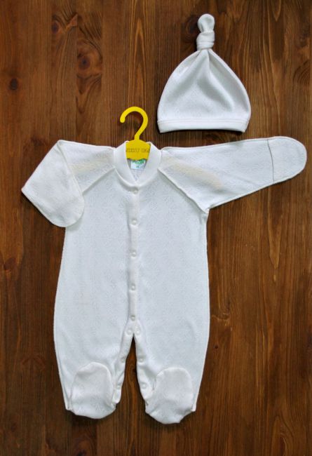 нарядный хлопковый бодик и плед вязаный хлопок - забирали в конце мая - было +20 - ребенок чувствовал себя комфортно , спала спокойно