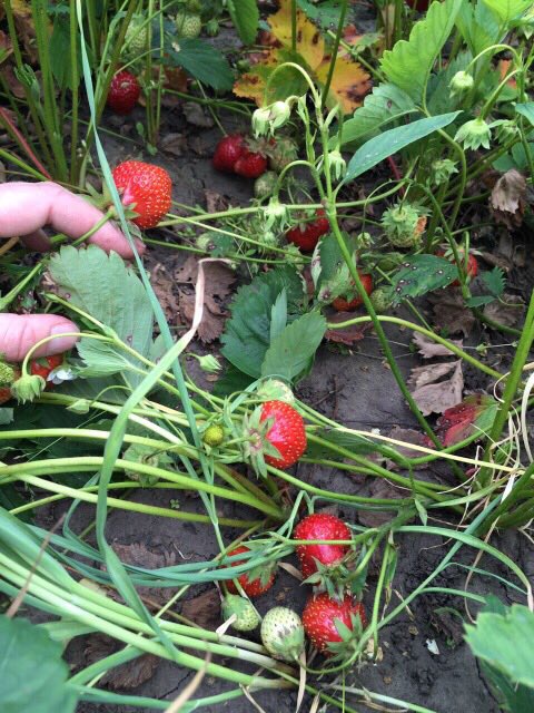 А мы сегодня приехали на дачу и сюрприз красная клубника штучек 15 уже было, малая довольна