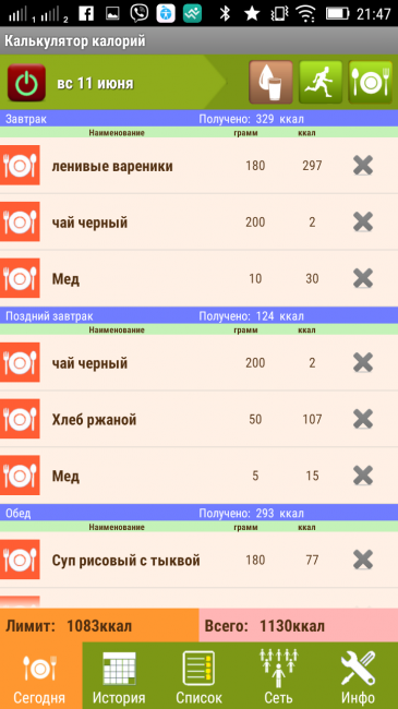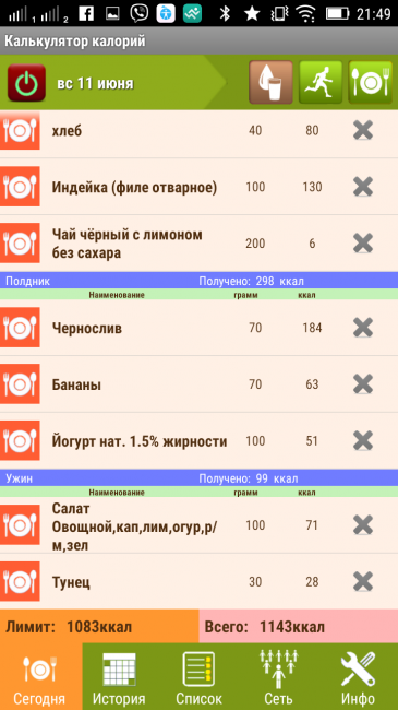 Меню моё на сегодняшний день, но перебрала калорий слегка.