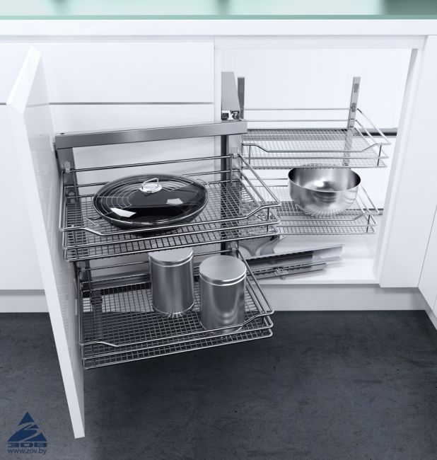 Девочки, у кого угловая кухня, как обустроили угол кухни. Угол хочу не скошенный, а прямой и не могу понять, как обустроить доступ к нему.Что лучше там разместить, какую фурнитуру использовать, чтоб было максимально удобно и функционально.Интересуют, как верхние ящики так и нижние.