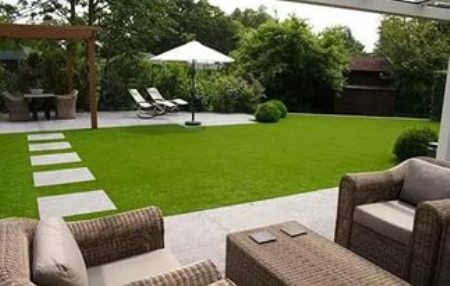 постелите на участке искусственный газон и постройте красивый мангал.