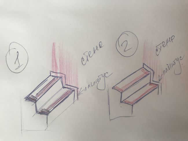 Я нарисовала схему ступеней (1 вариант и 2 вариант . Плитка как на фото. Возле стены какую плитку ложить с угловыми полосками или без? Возле стены будет плинтус из плитки
