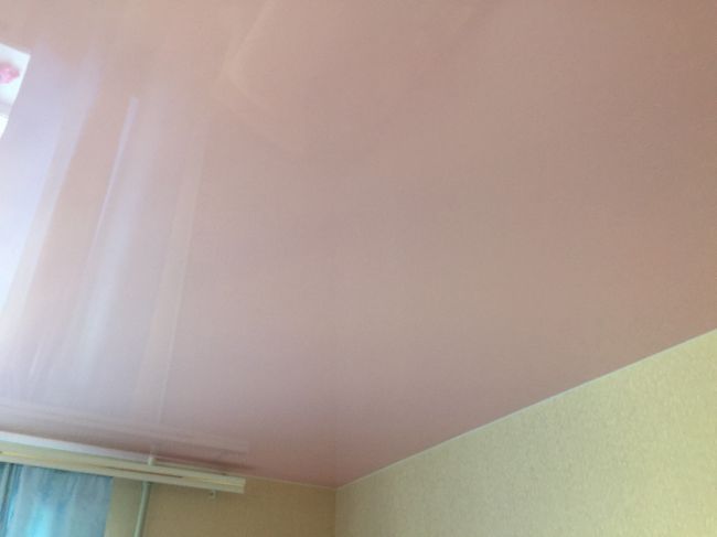 Ковёр розово фиолетовый, пол белый, потолок розовый, обои с одной стороны нежно розовый с другой разноцвет .