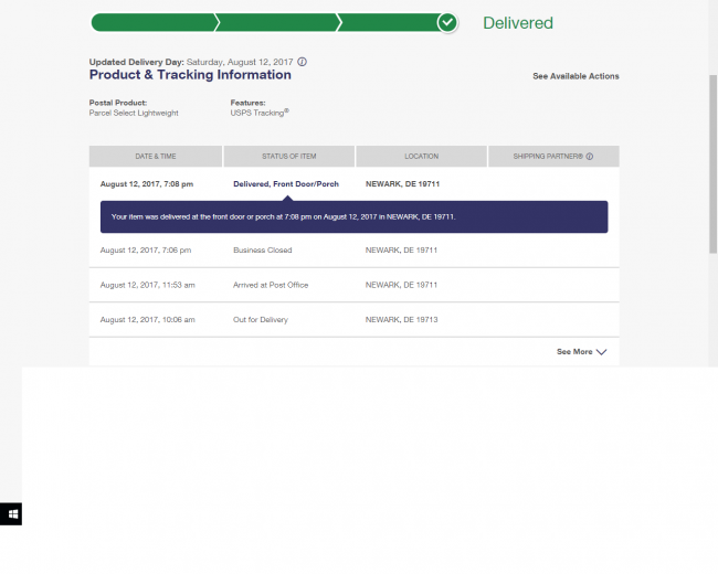 Магазин отшипил заказ еще 6 числа, 12-го доставлен, cогласно статусу, пакет оставлен под дверью. (Business closed/delivered front door)