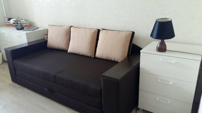 Дело в том, что это диван раскладной, мы на нем спим. Подушки чаще всего прячем(