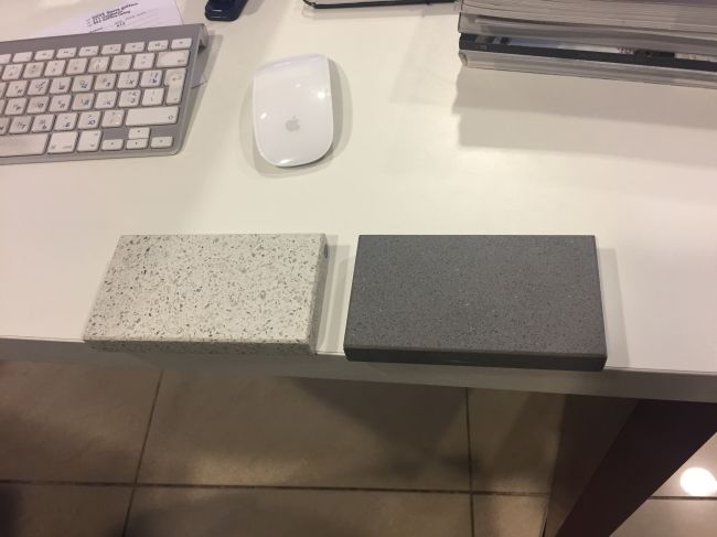 Ще чоловік збиває мене з толку. Він сіру каже ставити. Каже що я плачу за кварц, а якщо поставлю з крошкою, то буде виглядати як дешевий граніт, з якого пам´ятники на цвинтарі роблять. Але я щось не бачила на цвинтарі таких світлих пам´ятників, зазвичай всі червоні або чорні
