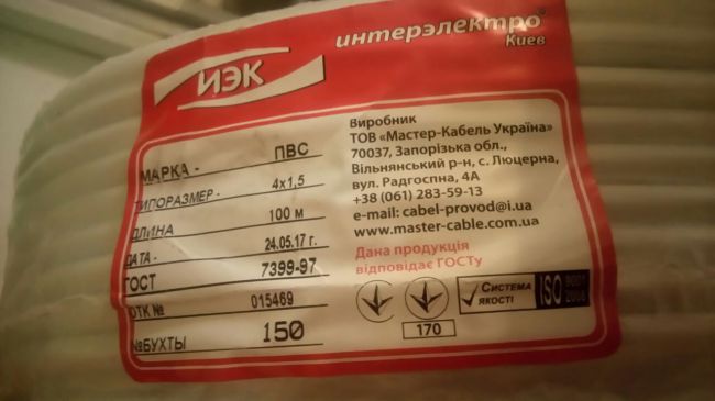 Пишите ’кабель ПВС 4×1,5. Гостовский. Киевэлектро’