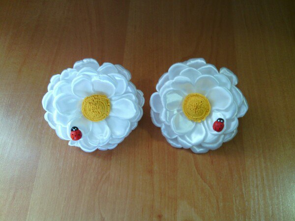 Нравятся только белые(ромашки?) с божьими коровками, на остальные уже не смотрю - все однотипные. Дочке на 1 сентября купила заколку в виде мака, остальные - это обычные резинки, или с фигурками(ХэллоуКитти, котики, птички, розочки, прозрачные дельфинчики, звездочки), с камушками.