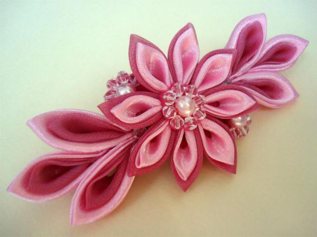 На мой вкус цветы из фоамирана (кажется так) смотрятся красиво сама недавно купила резинку с таким цветком дочке в ватсонсе, канзаши мне никогда не нравились, фото 2 мило для деток 2-3 лет пойдет.